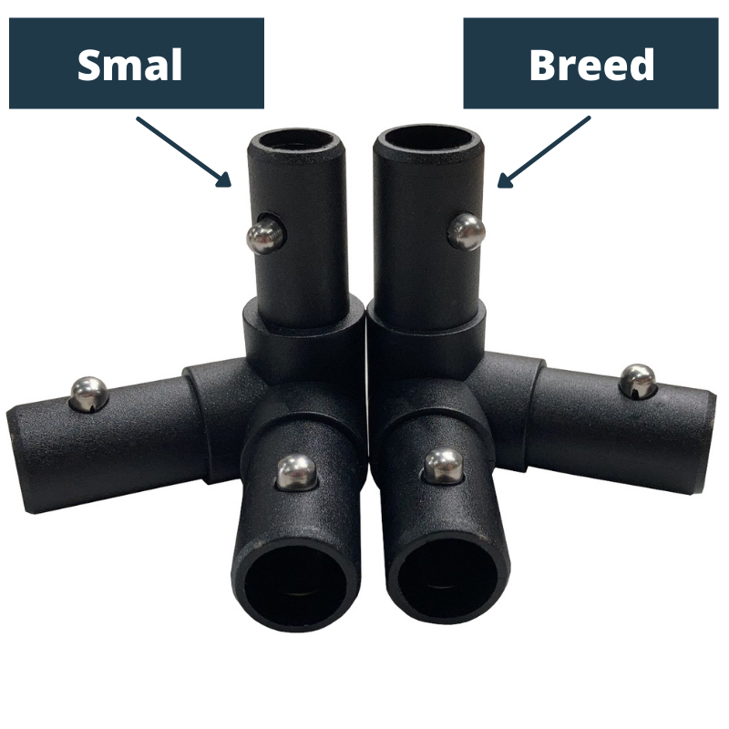 Leider kann es vorkommen, dass bei starkem Wind oder Überlastung das Eckstück des Support Frames bricht. Die Eckstücke unterscheiden sich im Durchmesser des Röhrchens. Achten Sie daher beim Bestellen unbedingt darauf, ob Sie die schmale oder die breite Variante benötigen. Der Unterschied ist auf dem obigen Foto zu erkennen.